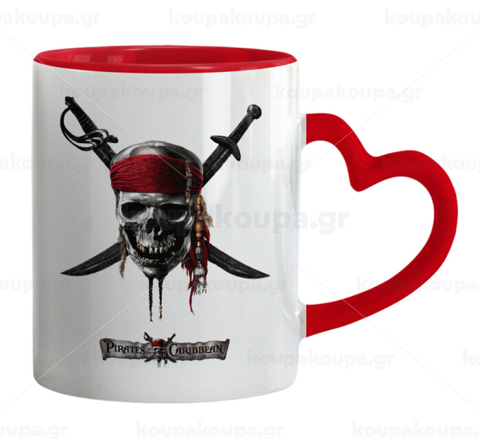 Pirates of the Caribbean, Mug heart red handle, ceramic, 330ml