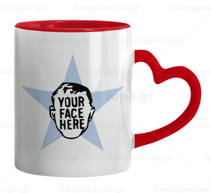 A glossy, high-quality mug with a heart-shaped handle and vibrant colors. Dishwasher safe and suitable for microwave use. Use it for hot and cold drinks.