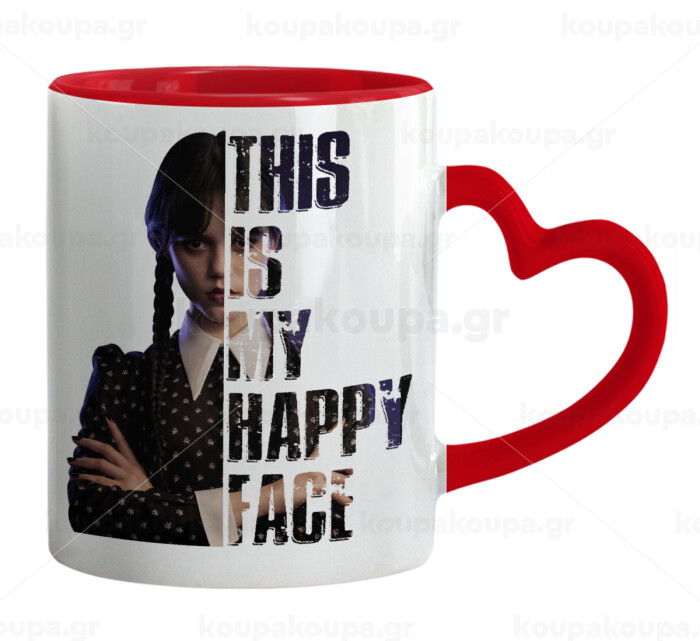 Wednesday, This is my happy face, Mug heart red handle, ceramic, 330ml