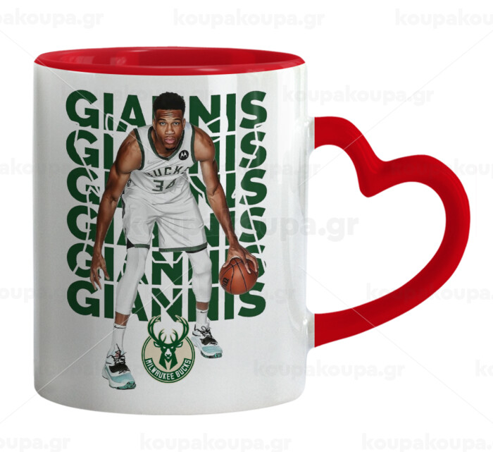 Giannis Antetokounmpo, Mug heart red handle, ceramic, 330ml