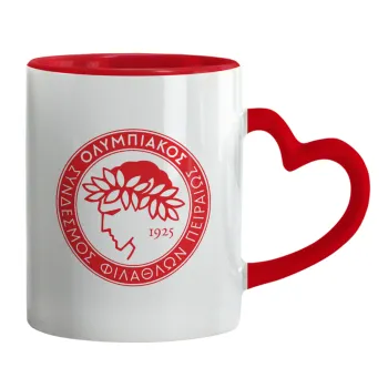 Ολυμπιακός, Mug heart red handle, ceramic, 330ml