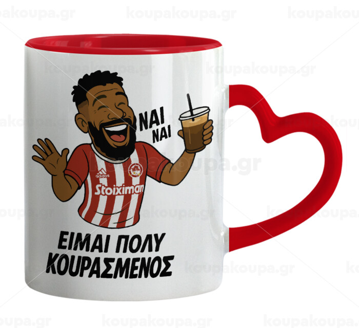 Ροντινέι, "ΠΟΛΥ ΚΟΥΡΑΣΜΕΝΟΣ", Mug heart red handle, ceramic, 330ml