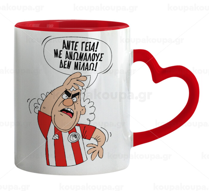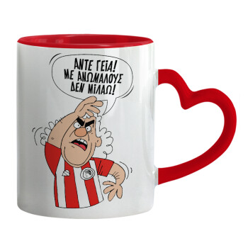 Τάκης, Άντε γεια, με ανώμαλους δεν μιλάω!, Mug heart red handle, ceramic, 330ml