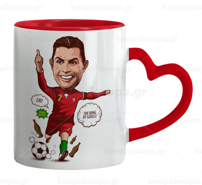 Cristiano Ronaldo, Mug heart red handle, ceramic, 330ml