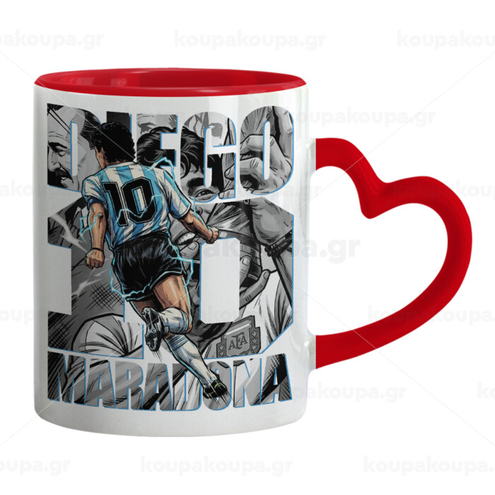 Diego Maradona (Ντιέγκο Μαραντόνα), Mug heart red handle, ceramic, 330ml