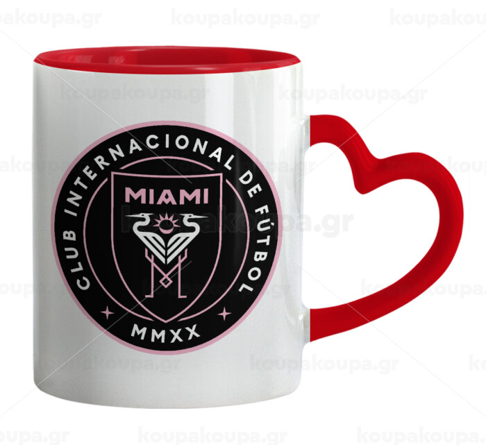Inter Miami CF, Mug heart red handle, ceramic, 330ml