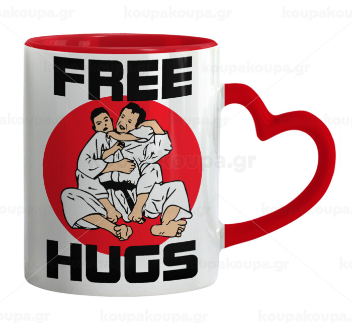 JUDO free hugs, Mug heart red handle, ceramic, 330ml