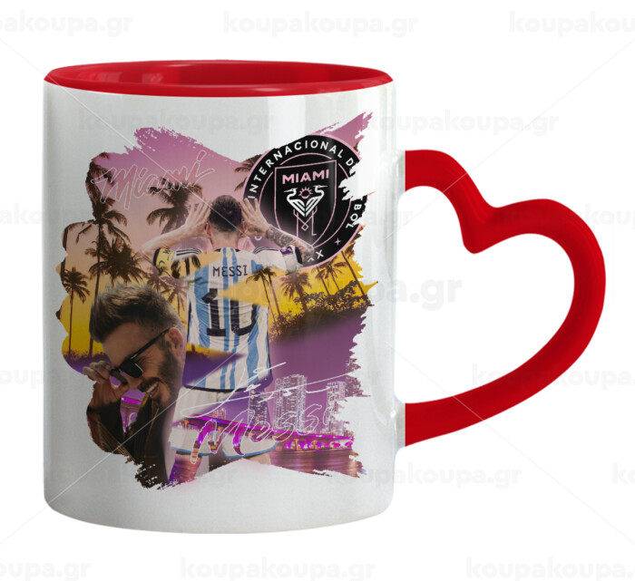 Lionel Messi Miami, Mug heart red handle, ceramic, 330ml