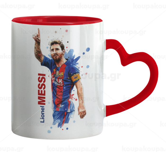 Lionel Messi, Mug heart red handle, ceramic, 330ml