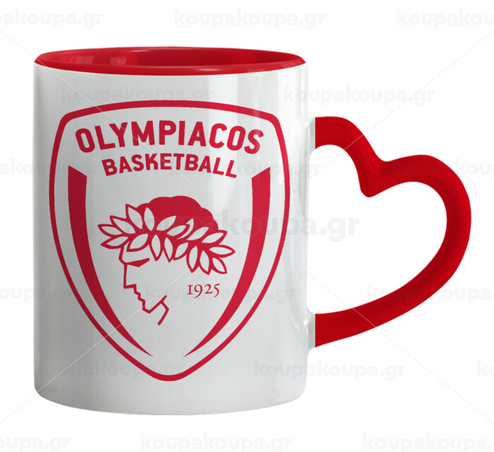 Olympiacos B.C., Mug heart red handle, ceramic, 330ml