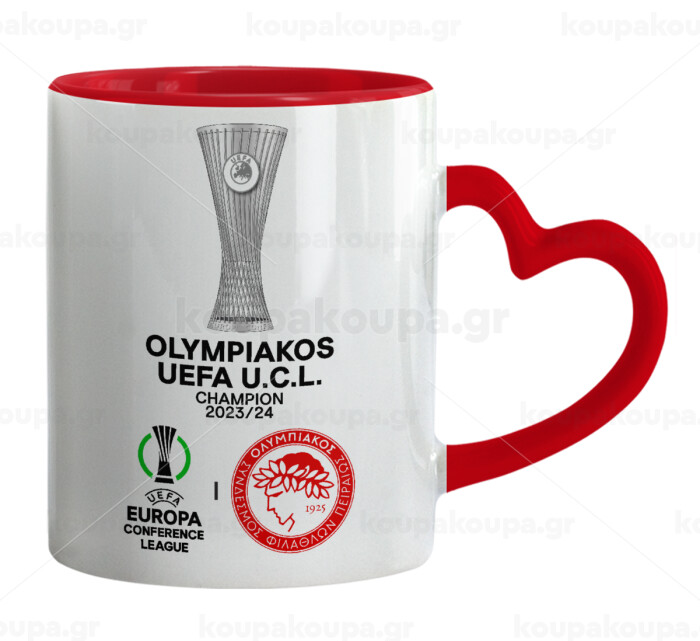 Olympiacos UEFA Europa Conference League Champion 2023/24, Mug heart red handle, ceramic, 330ml