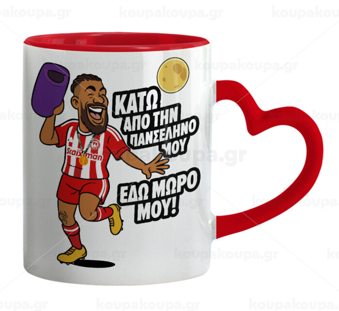 Ροντινέι, "ΚΑΤΩ ΑΠΟ ΤΗΝ ΠΑΝΣΕΛΗΝΟ ΜΟΥ!", Mug heart red handle, ceramic, 330ml
