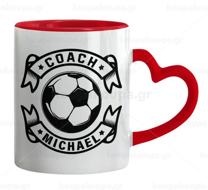 Soccer coach, Mug heart red handle, ceramic, 330ml