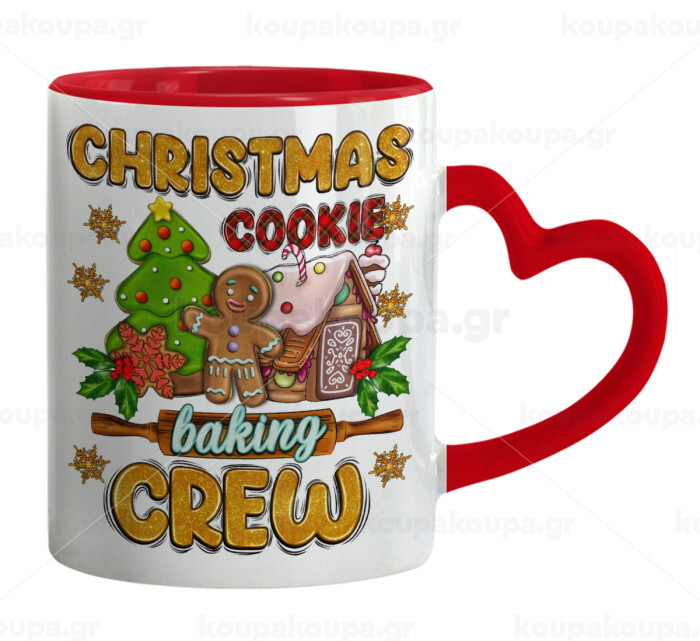 Christmas Cookie Baking Crew, Mug heart red handle, ceramic, 330ml