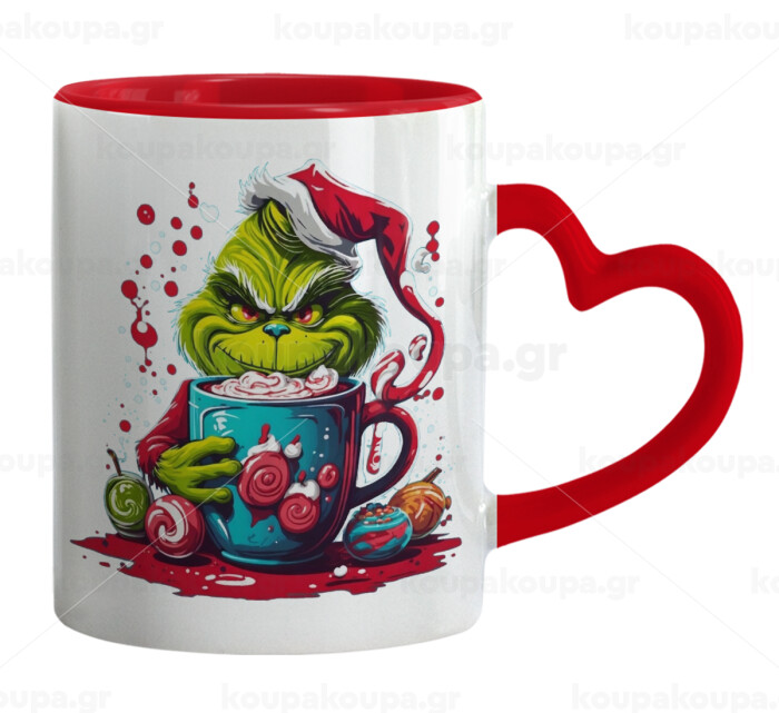 Giggling Grinchy Galore, Mug heart red handle, ceramic, 330ml