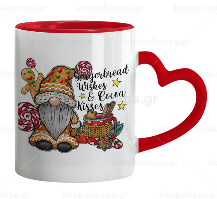 Gingerbread Wishes, Mug heart red handle, ceramic, 330ml