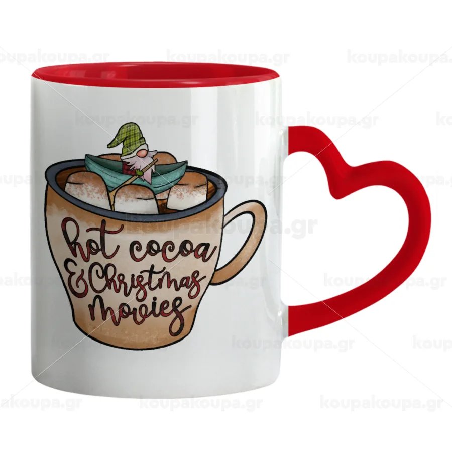 Hot Cocoa And Christmas Movies, Mug heart red handle, ceramic, 330ml