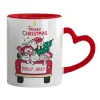 Merry Christmas cats in car, Mug heart red handle, ceramic, 330ml
