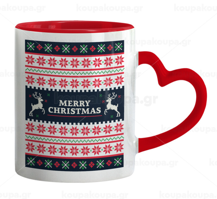 Merry Christmas Vintage, Mug heart red handle, ceramic, 330ml