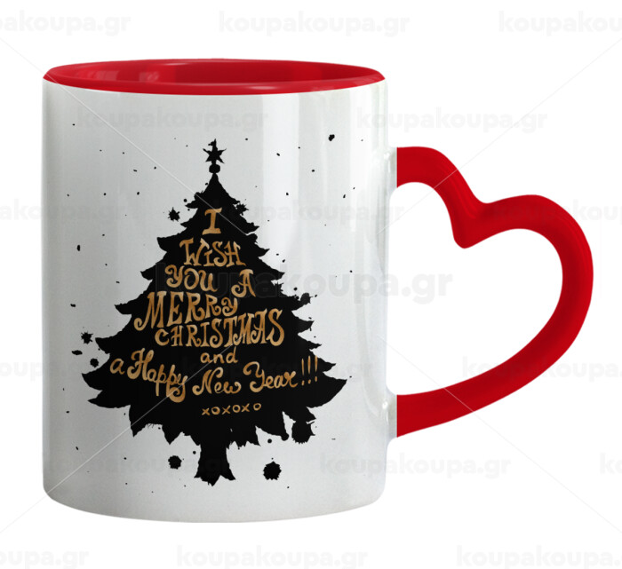 Tree, i wish you a merry christmas and a Happy New Year!!! xoxoxo, Mug heart red handle, ceramic, 330ml