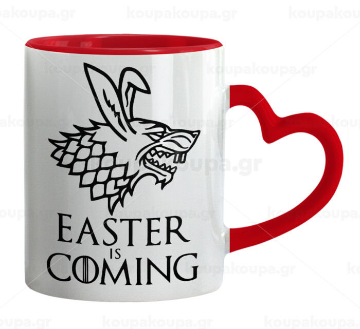 Easter is coming (GOT), Mug heart red handle, ceramic, 330ml
