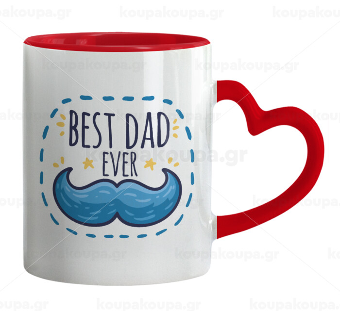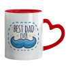 Best dad ever μπλε μουστάκι, Mug heart red handle, ceramic, 330ml