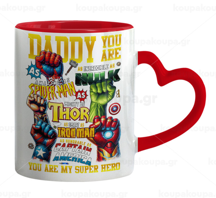 Daddy You Are my Hero, Mug heart red handle, ceramic, 330ml