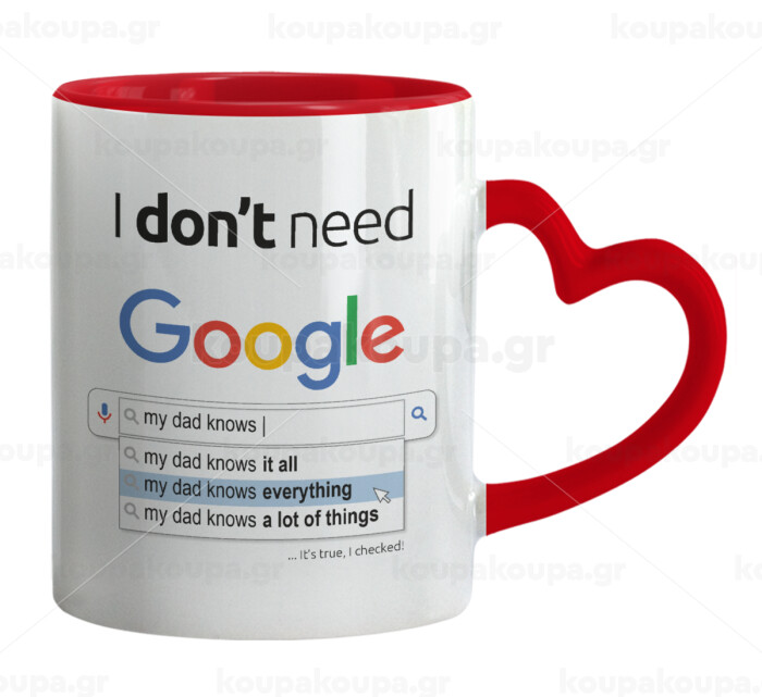 I don't need Google my dad..., Mug heart red handle, ceramic, 330ml