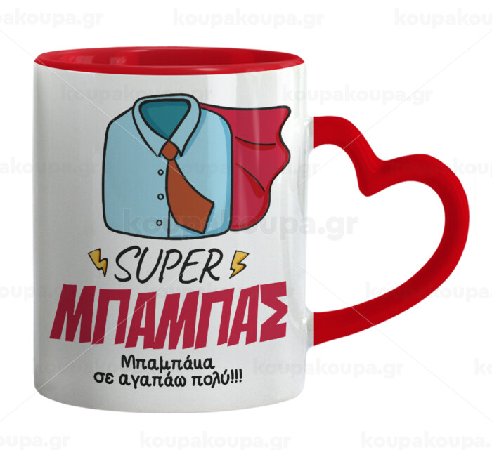 SUPER ΜΠΑΜΠΑΣ, Mug heart red handle, ceramic, 330ml