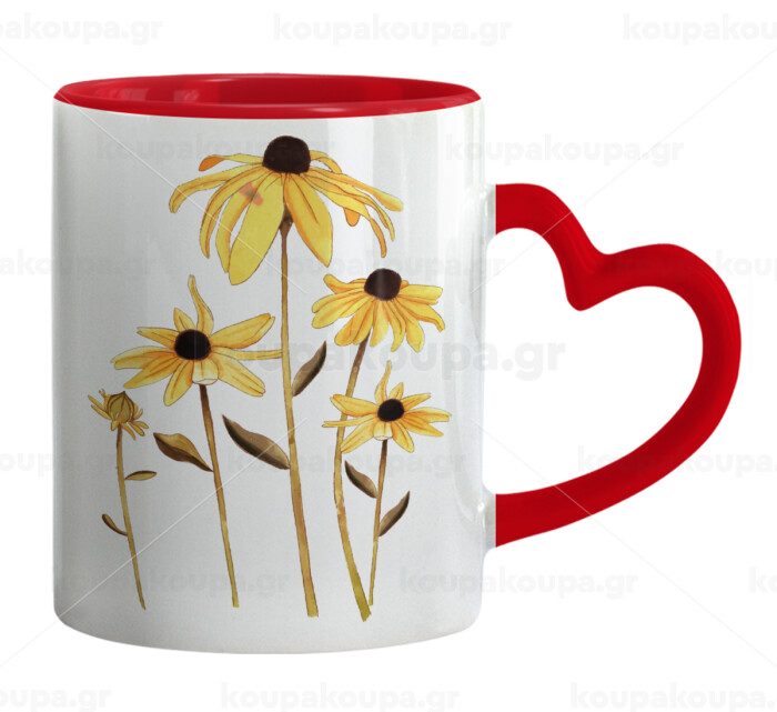 Daisies flower, Mug heart red handle, ceramic, 330ml