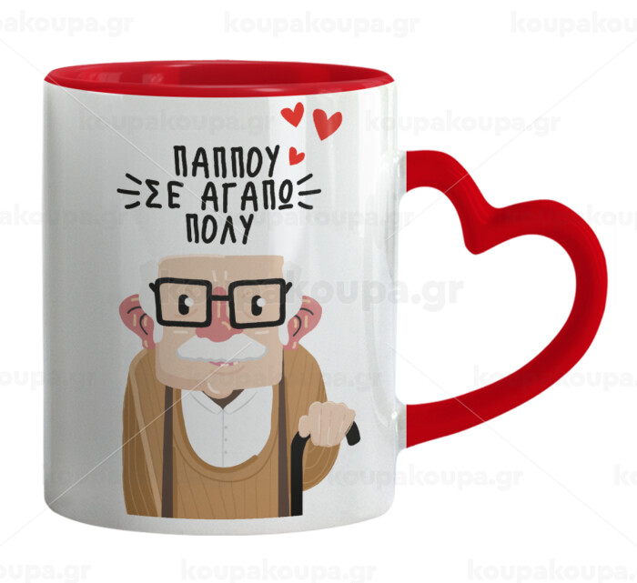Παππού σε αγαπώ πολύ!, Mug heart red handle, ceramic, 330ml
