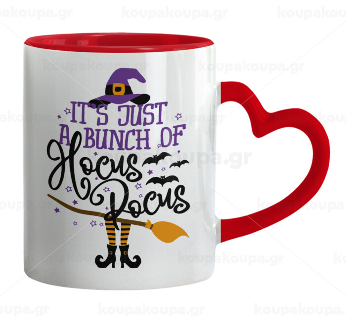 It's just a bunch of hocus pocus - halloween, Mug heart red handle, ceramic, 330ml