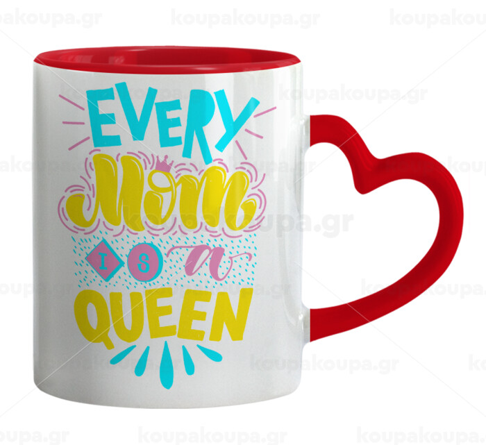 Every mom is a Queen, Mug heart red handle, ceramic, 330ml