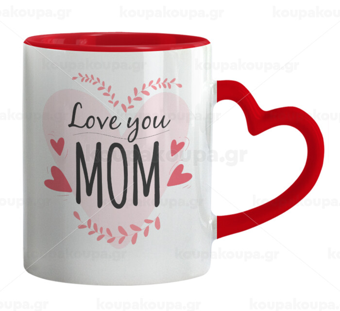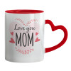 Mother's day I Love you Mom heart, Mug heart red handle, ceramic, 330ml