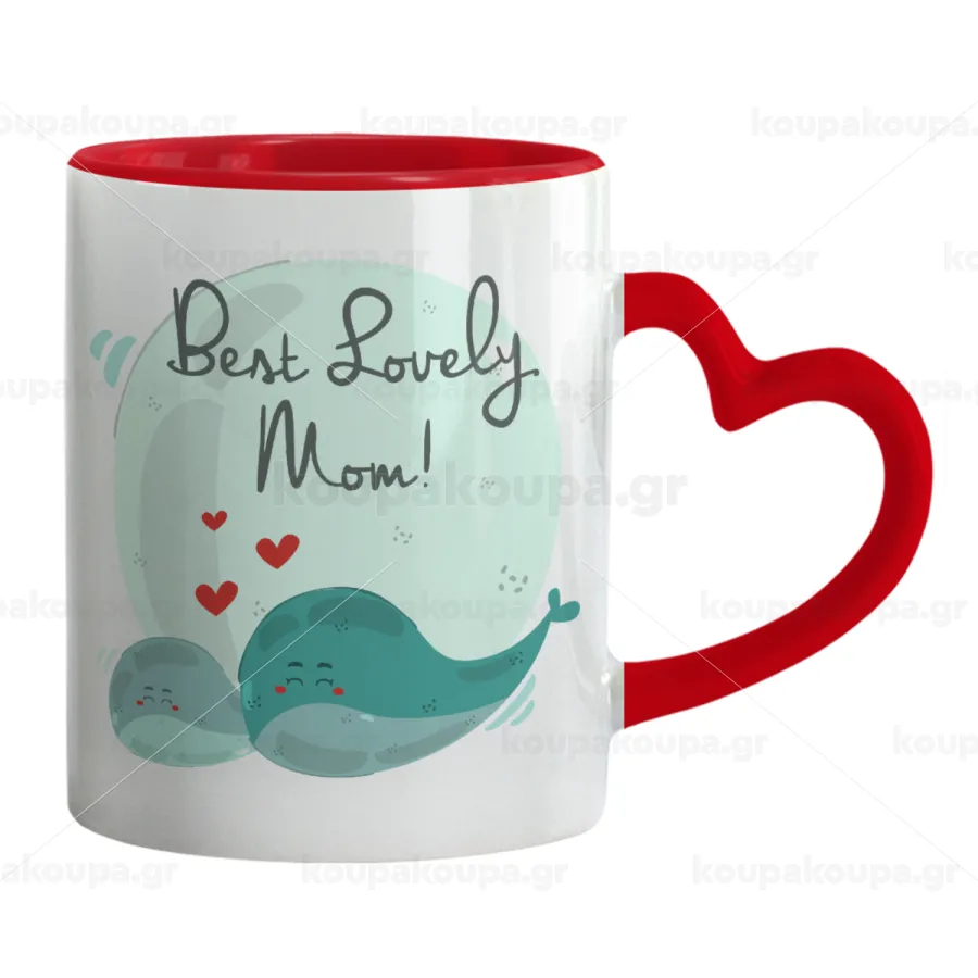 Mothers Day, whales, Mug heart red handle, ceramic, 330ml