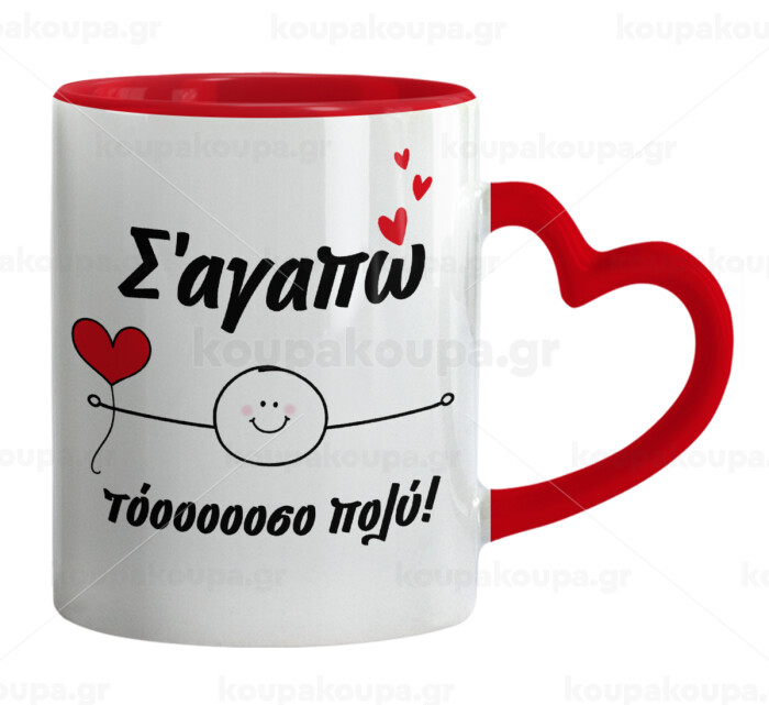 Σ΄αγαπώ τόοοοσο πολύ (Αγόρι)!!!, Mug heart red handle, ceramic, 330ml