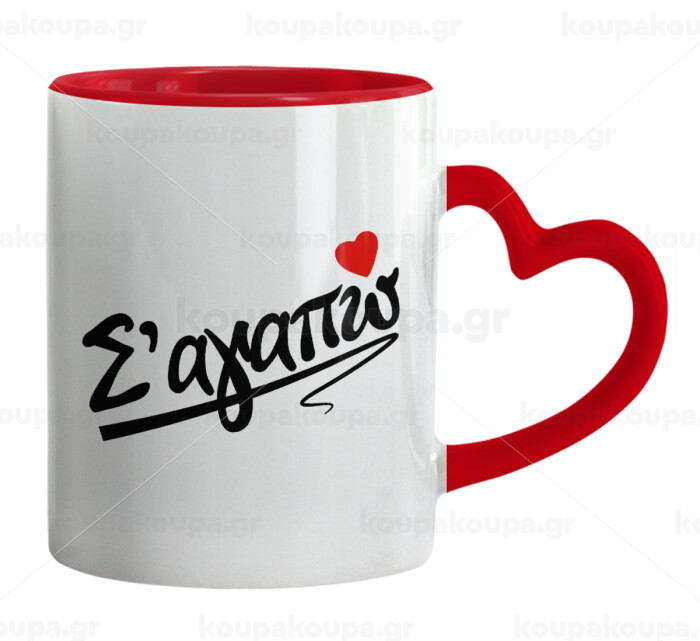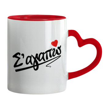 Σ΄ αγαπώ!!!, Mug heart red handle, ceramic, 330ml