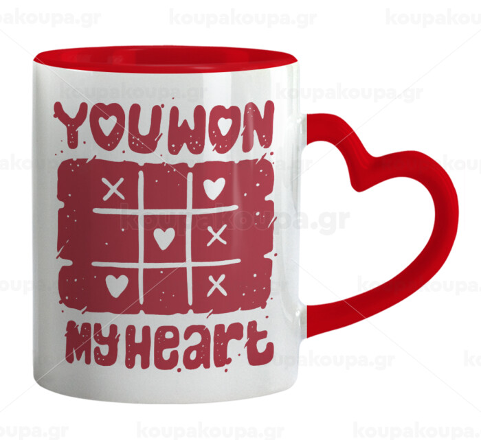 Τρίλιζα you won my heart, Mug heart red handle, ceramic, 330ml