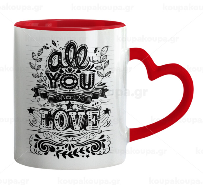 All you need is love, Mug heart red handle, ceramic, 330ml