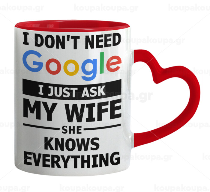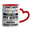 I don't need Google, just ask my WIFE, Mug heart red handle, ceramic, 330ml