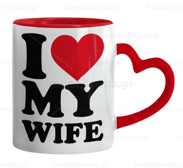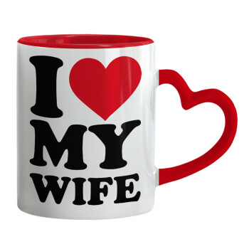 I Love my Wife, Mug heart red handle, ceramic, 330ml