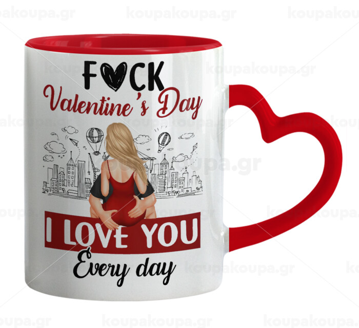I love You Everyday , Mug heart red handle, ceramic, 330ml