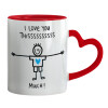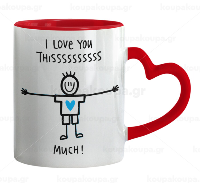 I Love you thissss much (boy)..., Mug heart red handle, ceramic, 330ml