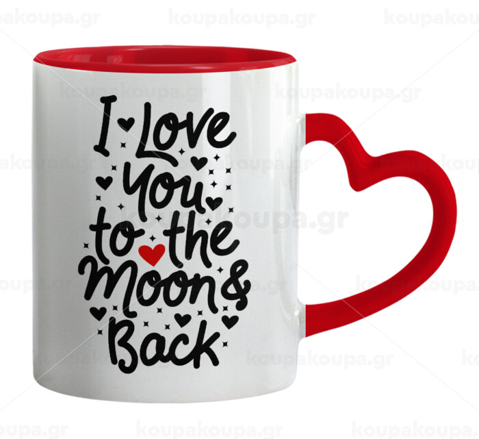 I love you to the moon and back with hearts, Mug heart red handle, ceramic, 330ml
