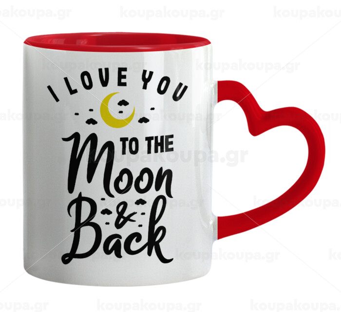 I love you to the moon and back, Mug heart red handle, ceramic, 330ml