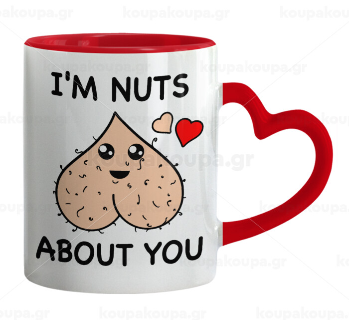 I'm Nuts About You, Mug heart red handle, ceramic, 330ml