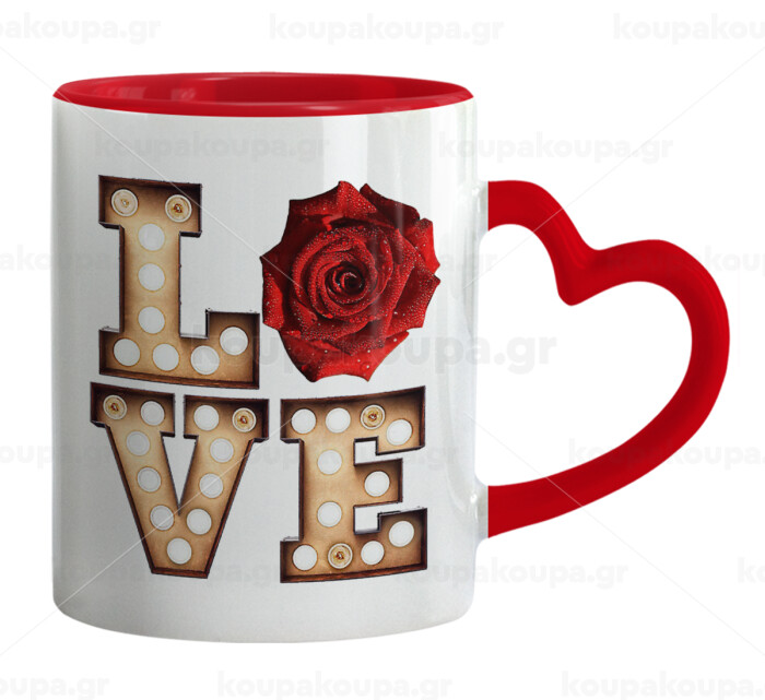 Love lights and roses, Mug heart red handle, ceramic, 330ml