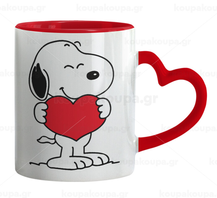 Snoopy takemy heart, Mug heart red handle, ceramic, 330ml