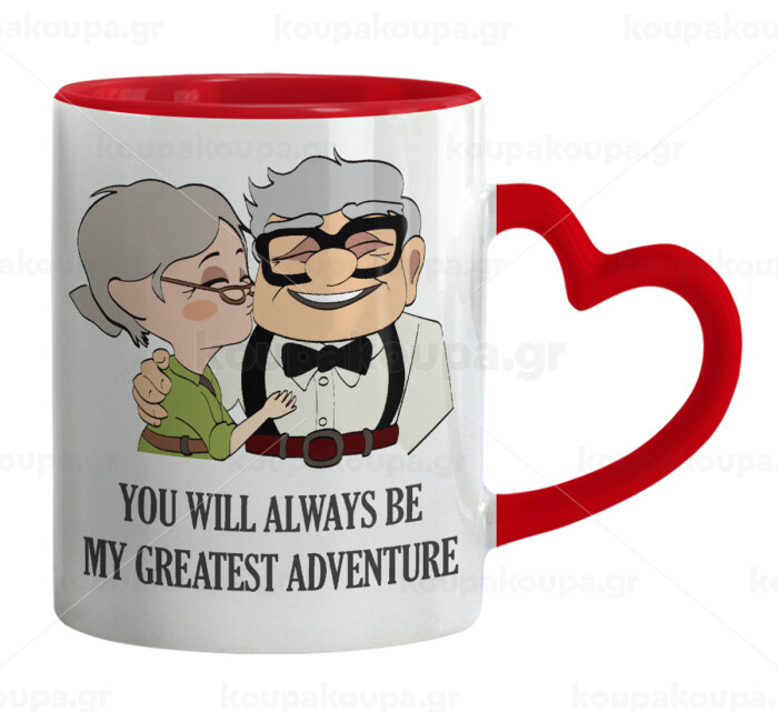UP, YOU WILL ALWAYS BE MY GREATEST ADVENTURE, Mug heart red handle, ceramic, 330ml