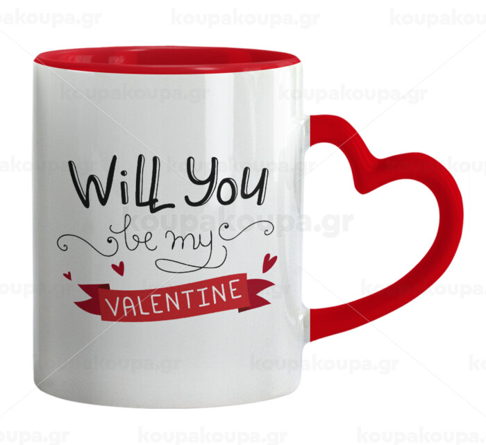 Will you be my Valentine???, Mug heart red handle, ceramic, 330ml